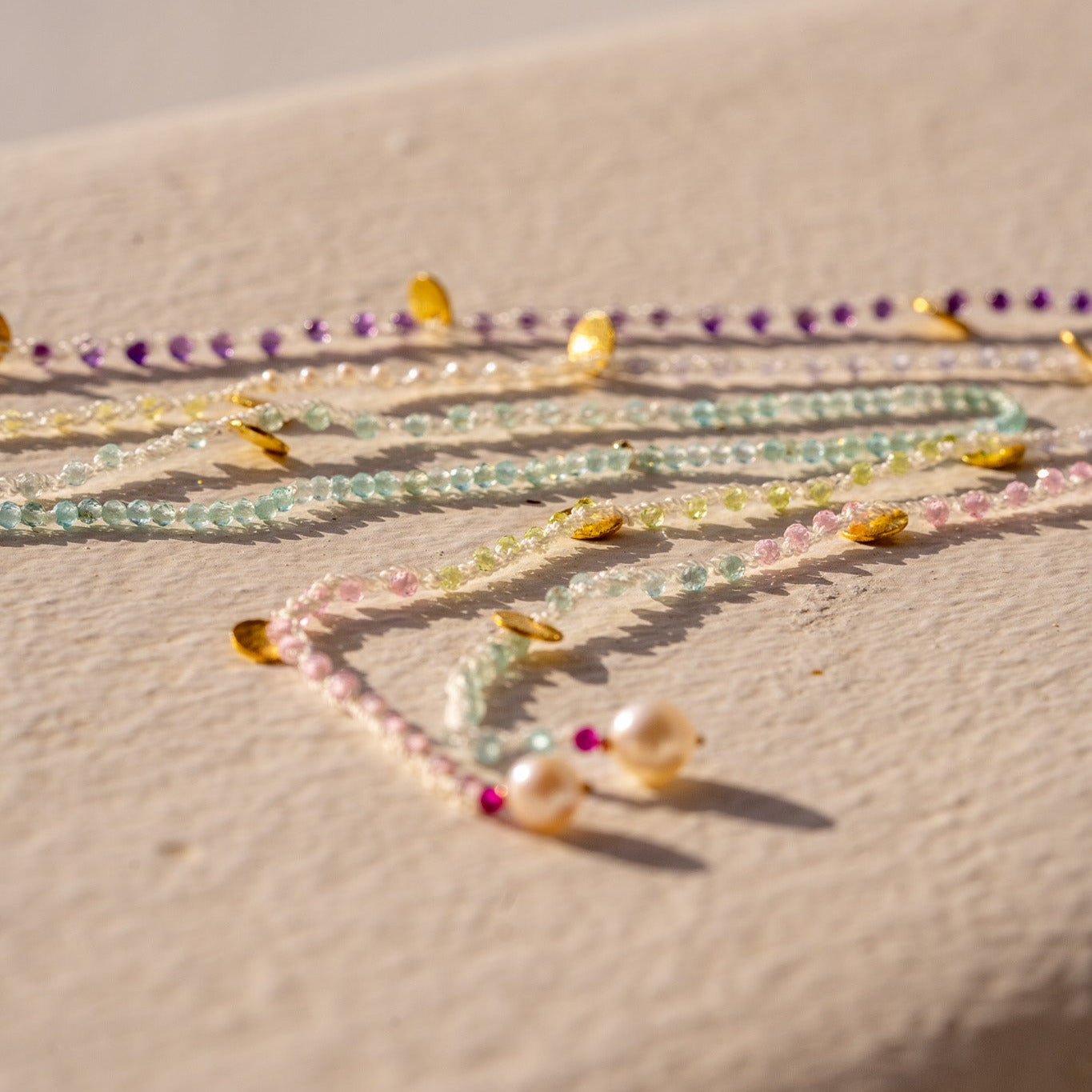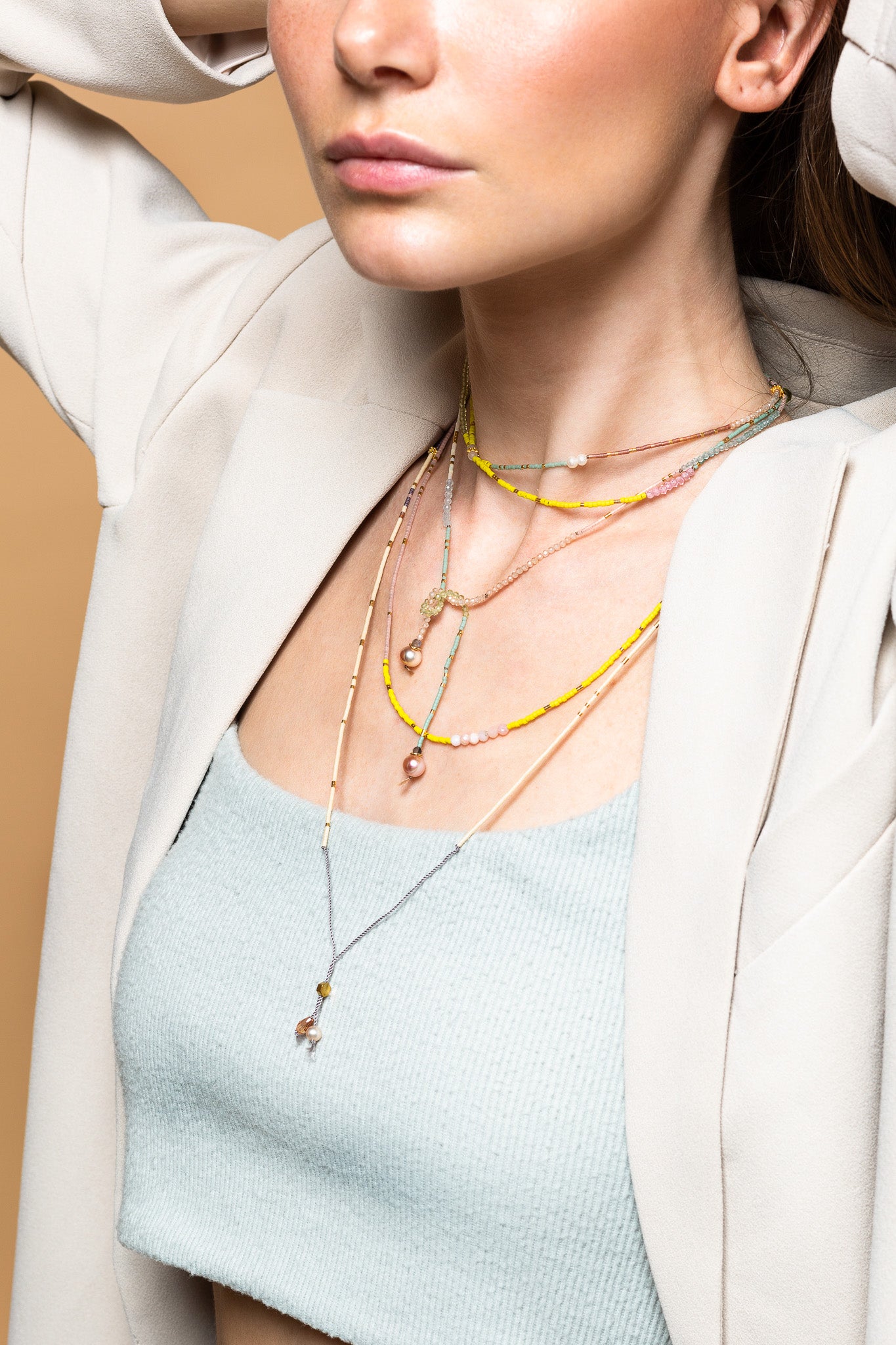 Mit ihrer luftigen Länge und dem feinen, gehäkelten Design verleihen diese Ketten jedem Outfit das gewisse Etwas. Elegant im Solo-Auftritt oder als Teil eines Layering-Looks getragen, bringen sie Farbe und Ausdruck in deinen Stil. Dabei bleibt jede Kette ein Unikat – gefertigt mit Liebe zum Detail und perfekt für alle, die es individuell und besonders mögen.