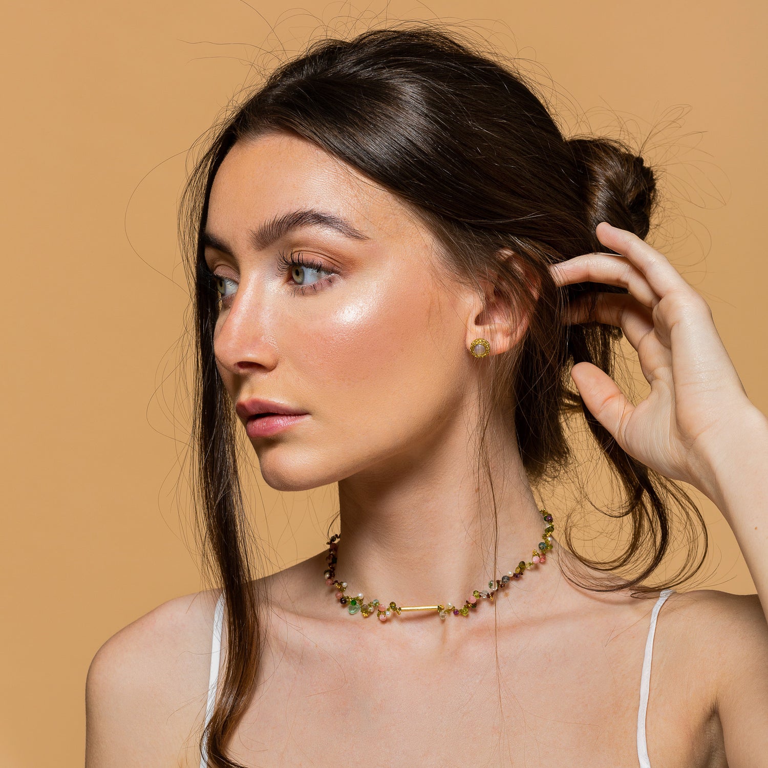 Als Halskette getragen, schmiegt sich das gehäkelte Band sanft an die Haut und setzt die Edelsteine dezent in Szene. Die elastische Verarbeitung sorgt für hohen Tragekomfort, während das minimalistische Design vielseitig kombinierbar bleibt – ob zum schlichten Top, luftigen Kleid oder eleganten Abend-Look. Jede Kette bringt ihre eigene Ausstrahlung mit und lässt sich solo oder im Layering perfekt in deinen persönlichen