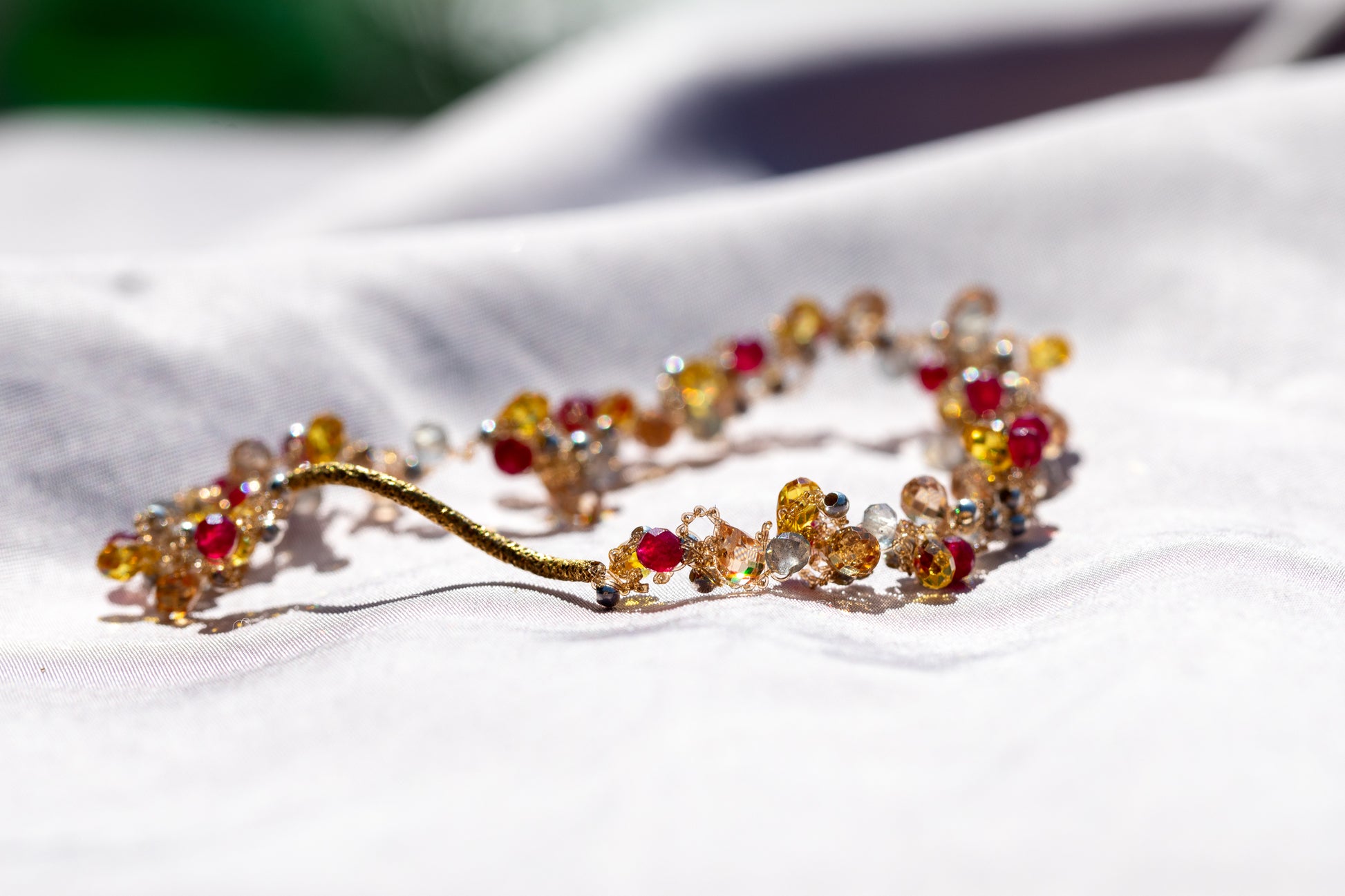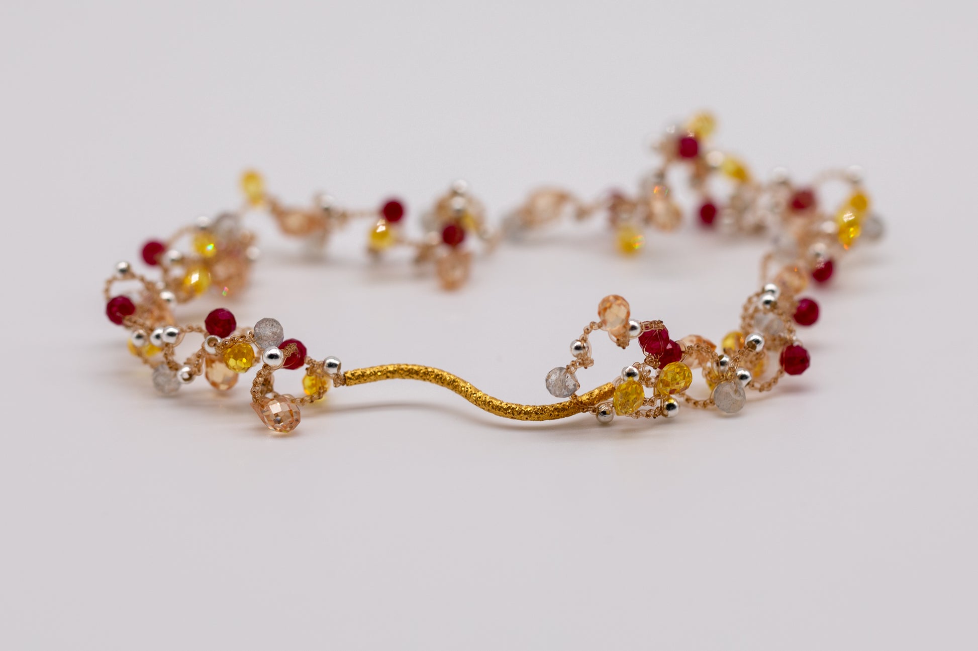 Ob lässig ums Handgelenk oder elegant am Hals getragen – diese elastische Kette verwandelt sich im Handumdrehen in ein stilvolles Armband. Das feine, gehäkelte Band sorgt nicht nur für einen angenehmen